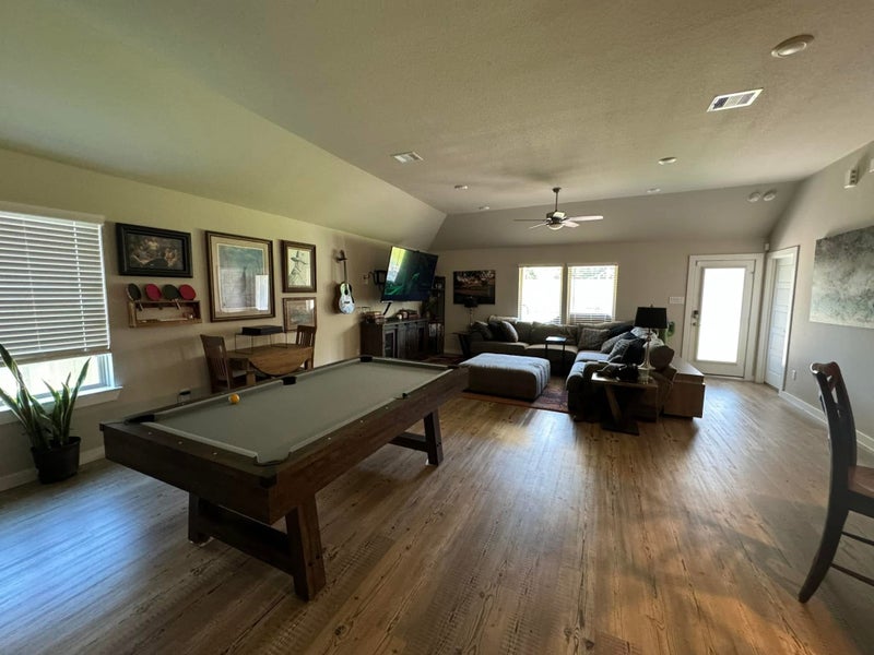 You’ll have your own room and bathroom. Room is furnished, but if you have your own furniture you can move yours in. Currently it’s just my boyfriend and I. We work a lot and then when we get home we either watch movies or play video games so we are fairly chill individuals. You’ll have access to common areas ie, living room, kitchen, pool table, and backyard and fire pit. We have two male cats, but unfortunately we don’t want more pets in the household at this time. Located in Magnolia, TX. Message for more details.