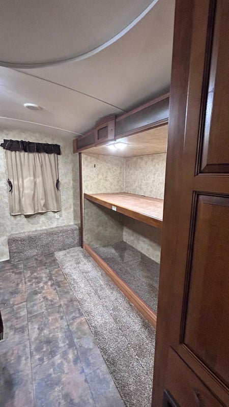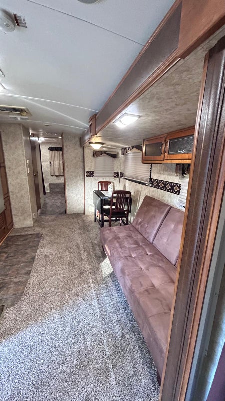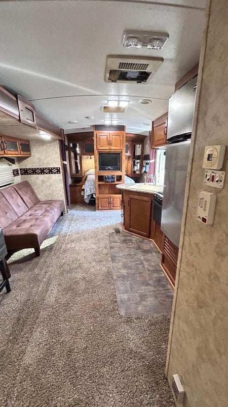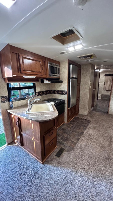 On site private RV for rent - 30' 6" x 6' 11" feet- KEYSTONE 26RBPR- One bedroom with bed, mattress, storage cupboards, Kitchen with refrigerator, microwave & stove. Living area. One bath and Shower. laundry in bldg. off-street parking.