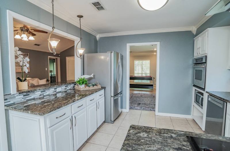 What You Get: Private, fully furnished bedroom (King Bed) with lock Shared full size bathroom Free High Speed Wireless Internet Access to spacious living areas with large TV's Laundry room with washer & dryer Fully equipped kitchen with new appliances Pool table Large fenced yard Free Parking Security CamerasHouse Alarm