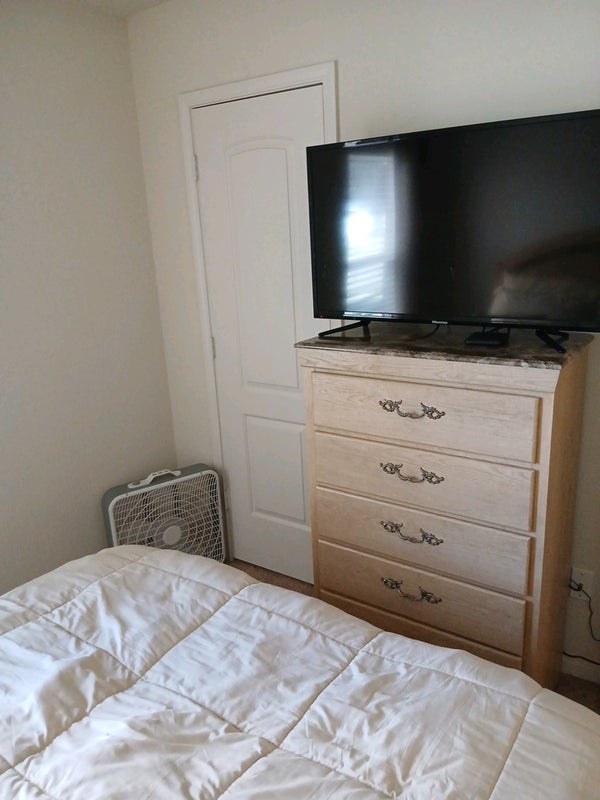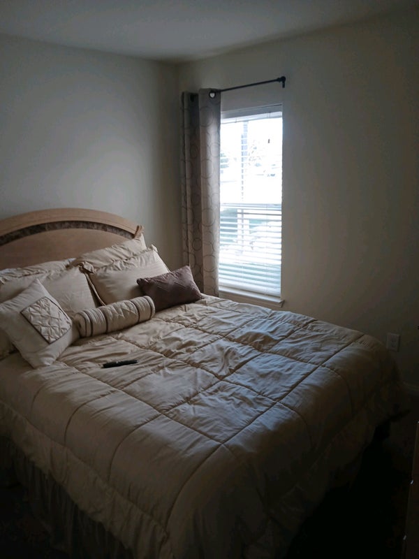 Large guest bedroom suite bathroom and walk-in closet fully furnished new neighborhood for bedrooms two full bathrooms oversized double car garage Public Schools across the street and down the road in both directions within a half a mile shopping and restaurants in theaters Less Than 3 MI I have one roommate in the front wing of the house and you would be in the guest bedroom suite at the front of the house fenced in backyard I have two loving little puppies they love people and they do not bite