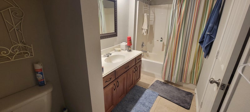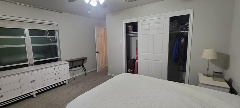 Large Queen Bedroom furnished or partial and Bathroom (just outside the bedroom door) for rent in Grapevine. 3 bed/2.5 bath townhouse shared with female owner and cat. Bedroom is upstairs, 14.5 × 10.5. Ceiling fan, TV in bedroom, and most utilities included. I work, I'm pretty quiet and rarely have guests. Looking for the same. I'd rather someone who doesn't cook a lot. No drugs or smoking (including vape). $1000/month. Deposit can be split into 2 months. Background check