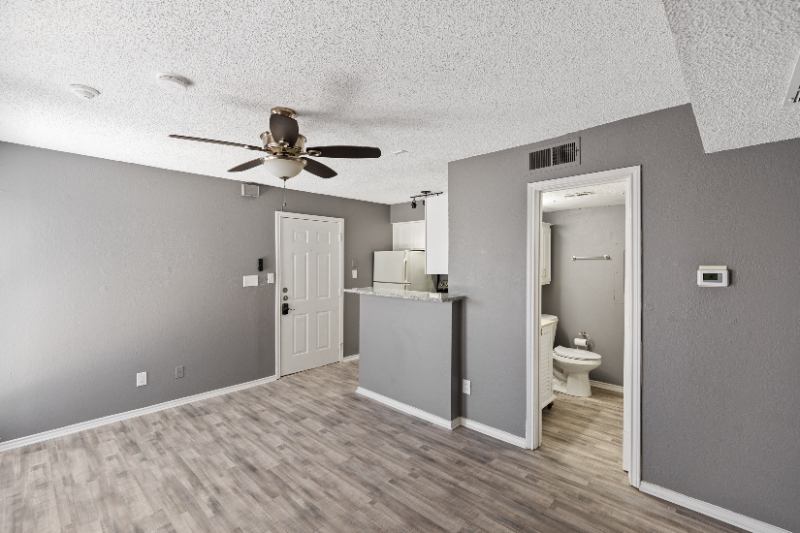 rd floor remodeled condo with fresh grey tone paint, granite countertops, new stove and microwave, new vinyl flooring, all appliances including WD, balcony, digital thermostat, and keyless entry.