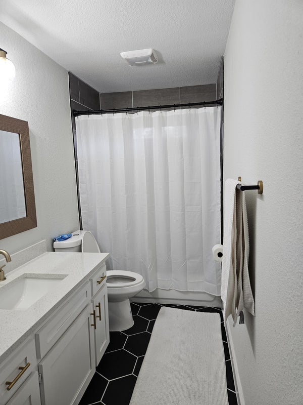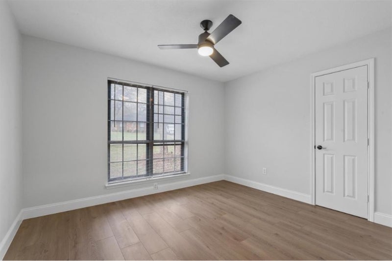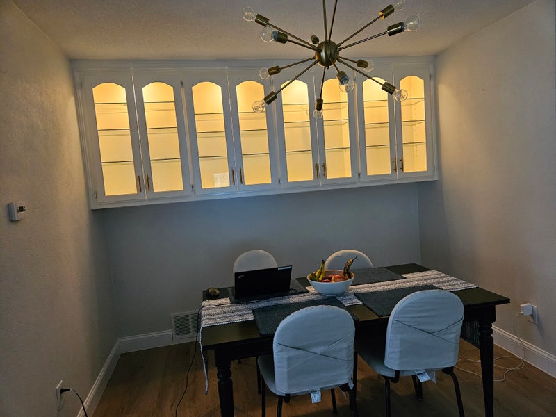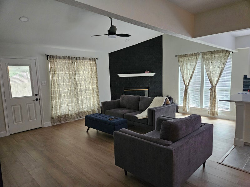 The single-story home is located in a quiet neighborhood near shops and restaurants. The home has 3 bedrooms and 2 bathrooms. The room is furnished with a full-size bed and a side table. The bathroom will be shared with another female tenant. The home features a dining area, living room, kitchen and backyard. These areas will be shared among all three tenants in the home. There is plenty of street parking as well as space to park in the driveway.