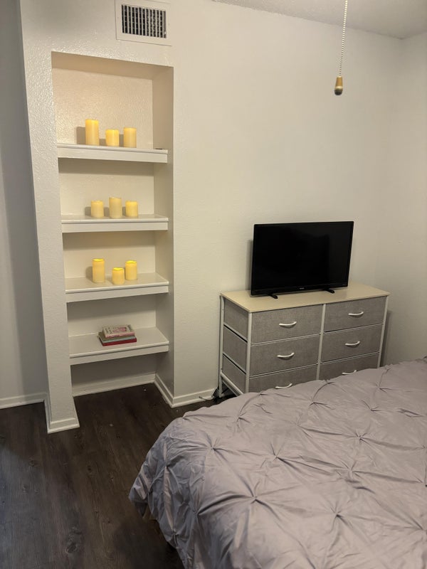 Newly renovated apartment on second floor. Bedroom and bath are down a private hallway and furnished. The bedroom has a queen size bed, dresser, nightstand , desk , office chair , private fridge/freezer and walk in closet.