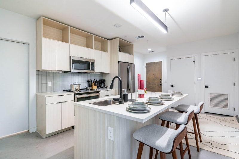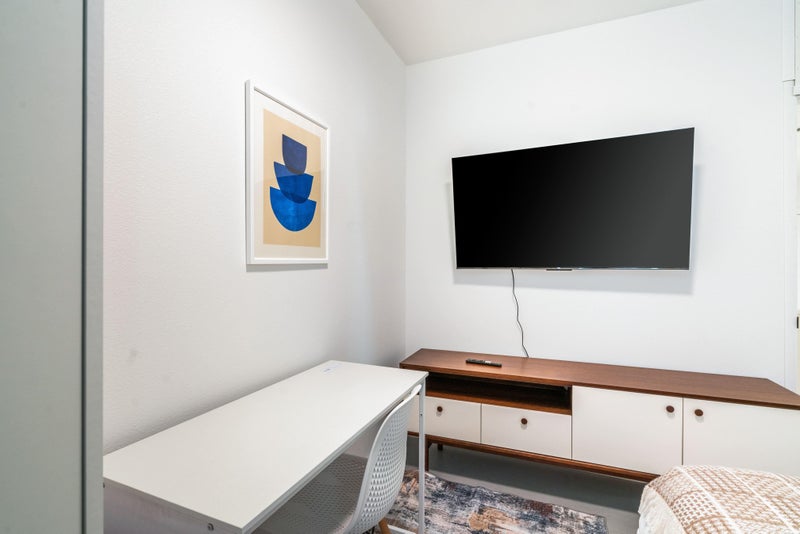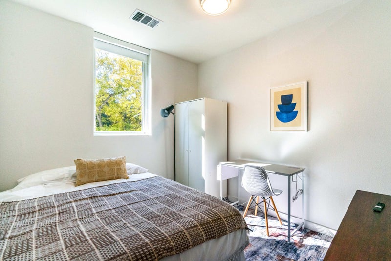 Room: Flex Premium is a great choice for those looking for a bright room and a spacious area. This room provides a full-size bed, study desk, nightstand, 50" Smart TV, and a streaming device. Big windows allow an abundance of natural light to enter the room. It is important to highlight that this room has been created with a modular smart block system, and has an accordion door, which cannot be locked and does not provide full sound isolation. Neighborhood: Experience the energy of Downtown Austin at our prime residence, surrounded by a blend of modern skyscrapers, historic architecture, and lively streetscapes. Located near iconic spots like Congress Avenue and Lady Bird Lake, this neighborhood offers everything from cultural attractions to scenic outdoor activities and entertainment venues. The area is a short stroll to 9th Street BMX Park, Wooldridge Square Park, Pease Park, and Duncan Neighborhood Park, providing ample green spaces for relaxation. Just steps away from Austin Community College and only a mile from the University of Texas at Austin, our location caters to students and professionals alike. With easy access to the Ann & Roy Butler Hike & Bike Trail and close proximity to 6th Street’s vibrant nightlife and the Texas Capitol, this neighborhood delivers a true Austin experience, blending convenience, culture, and charm right at your doorstep.