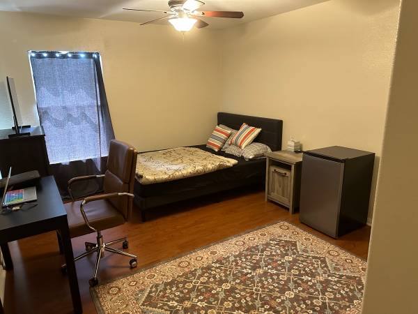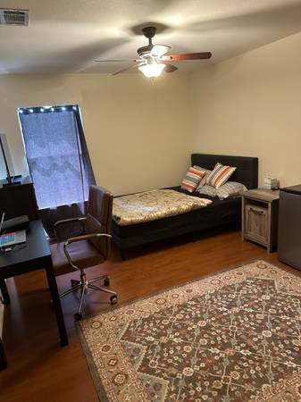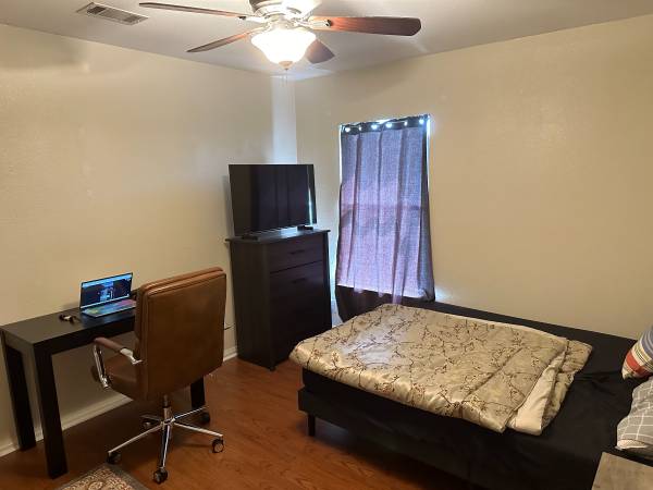 Furnished Room for rent: rent is $550 per month. Month to month lease is available. There is a mini fridge in the room, desk and chair, and big screen TV. You will have access to the kitchen and living room. Very nice neighborhood, close to Tesla, Samsung, The Domain, and downtown Austin. Please call or text with any questions