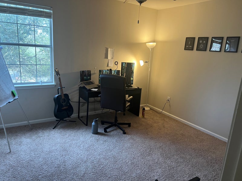 The room is unfurnished. I currently use it as my home office, so the office setup you see in the pictures will be completely moved out before you move in.