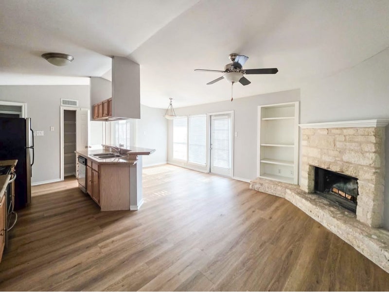 Spacious open layout with woodburning fireplace