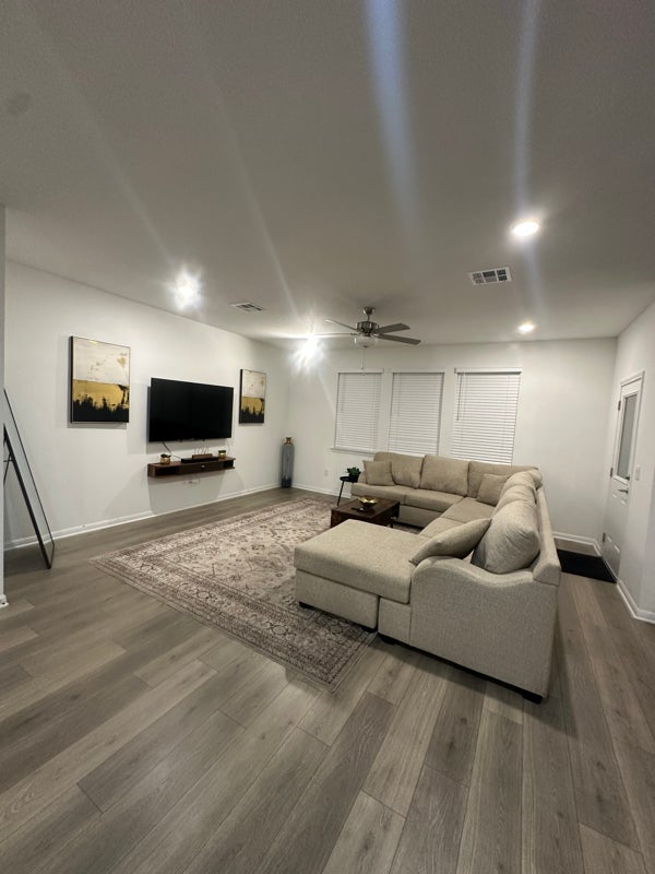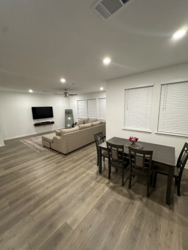 Enjoy a stylish experience at this centrallylocated place. Newly Constructed house tastefully furnished in a mid century modern style. Located under a minute drive from Central Austin. This house boasts a unique charm of an open layout, modern amenities, stainless steel appliances, hardwood floors, quartz countertop and a spacious kitchen. The space It is a newly constructed single family home beautifully furnished and equipped to be your home away from home.