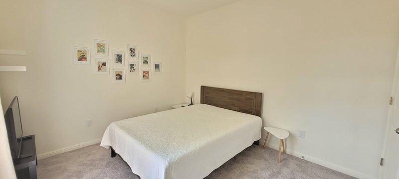 Quiet, Comfortable Room in a Peaceful Home Enjoy a calm and relaxing stay in this bright, minimalist private room located in a quiet and well-maintained home. The space is thoughtfully furnished with a comfortable bed, bedside table, and simple décor, creating a clean and uncluttered environment perfect for rest or remote work. The room features soft natural light, neutral tones, and a cozy layout designed for comfort and privacy. You’ll have access to a private bathroom located just outside the bedroom, reserved exclusively for you. The bathroom is spacious and clean, with a full bathtub and shower, plus additional storage space. This home is ideal for someone who values peace and tranquility. Located in a quiet neighborhood, it’s perfect for professionals or anyone looking for a stress-free living environment.