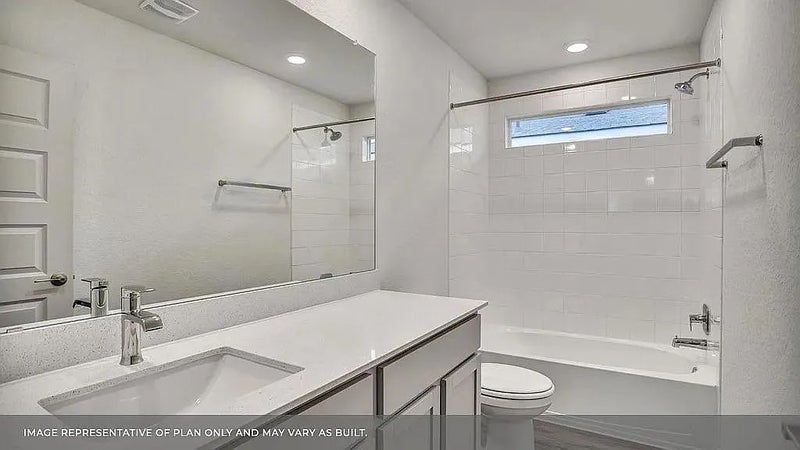 Wood-look flooring will be found in the main family and living spaces, as well as upgraded wall tile in both bathrooms.