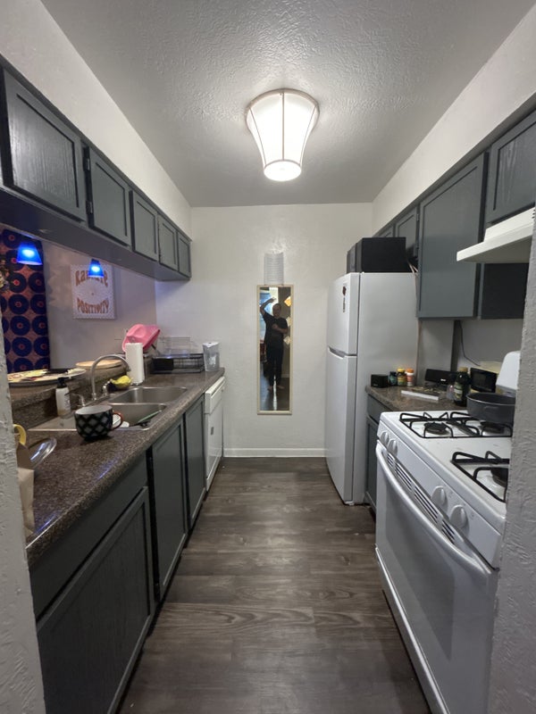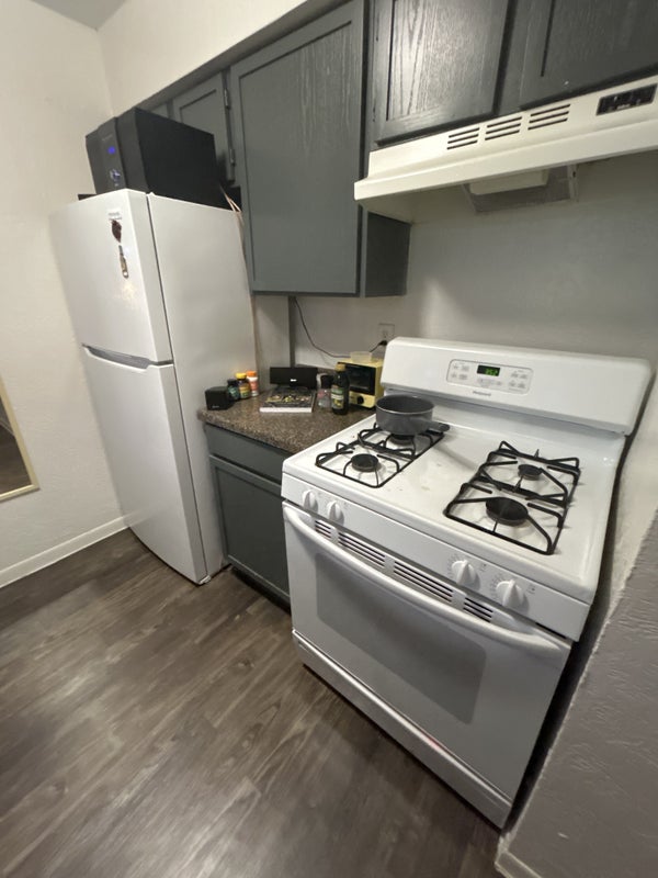 Kitchen: Gas stove BIG refrigerator Counter/bar space (with stools) past roommate Christina’s made them & a BUNCH of pantry storage space
