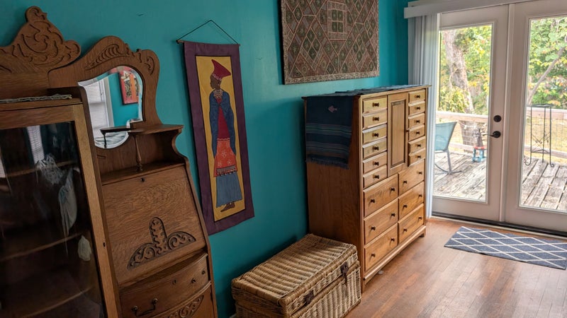 Spacious bedroom in fully furnished home in Rosedale/Highland Park neighborhood - quiet, walkable with close access to bus line. Shared areas: bathroom, LR, dining area, kitchen; yard, deck and grill. Work space also available. Utilities covered by rent include high-speed internet, Type 2 electric car charger. 1 to 6 month lease. Son of owner lives in the second bedroom and manages the property. Friendly Labrador lives on the premises