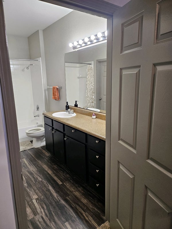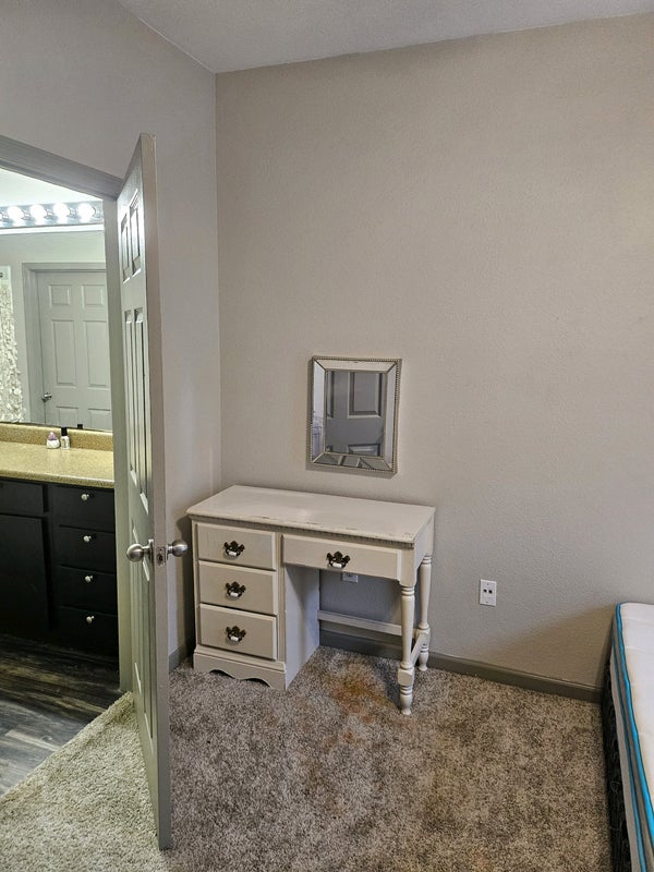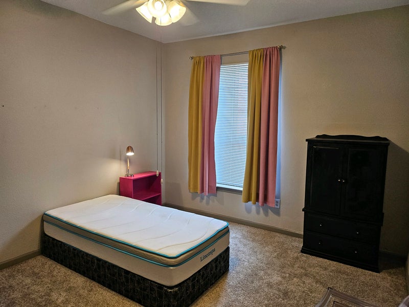 Renting out the 2nd bedroom with private attached bath and walk-in closet in my first floor, 2 bedroom apartment. The room is semi-furnished with a twin mattress and box spring, curtains, a tall dresser, side table, lamp, chair, vanity and mirror. I can remove furniture if that is absolutely necessary. The bathroom door leads to the hallway closet with the washer and dryer. The store can be locked if you so choose. The apartment is occupied by myself, female, 39 and 7 year old daughter. We are clean, respectful and we've had roommates before. We like to blast music and do art projects but we have common courtesy and can work around another person. I vape inside (nicotine), other than that I'm sober. Totally fine with alcohol in the house and smoking outside, just no hard drugs. All utilities included in monthly rent; electricity, gas, water, trash, Google fiber, apartment fees, as well as use of the gym, pool and hot tub. Mailboxes onsite. Gated. Parking lot is first come first serve. Valet trash. Looking for a decent human to share our space.
