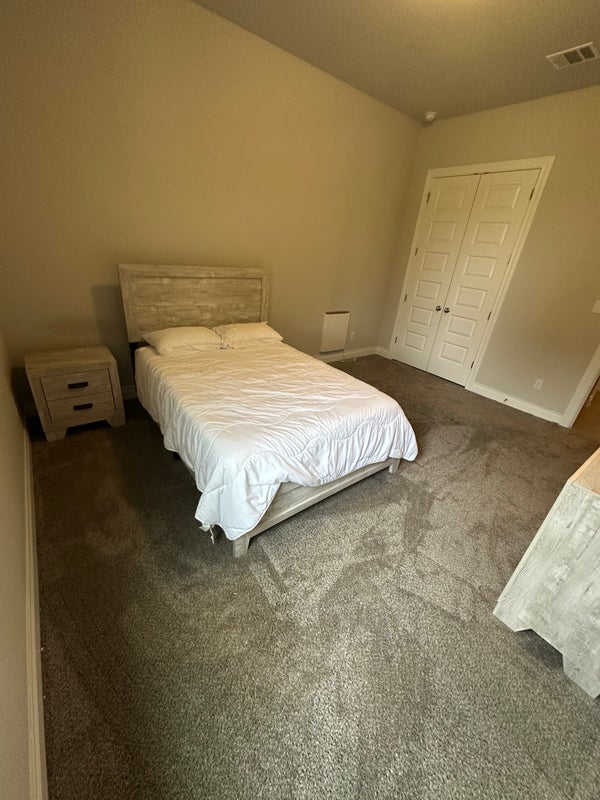 Are you looking for a quiet neighborhood and a quiet room that has no walking distance amenities? Are you ready to have to drive everywhere to get to anything? Well, I have a room for you. This room boasts a private feel. It shares a bathroom with the smaller furnished room. All inquiries welcome. Garage space available and additional people will increase rent and can be discussed. Other items that can be added can be discussed.