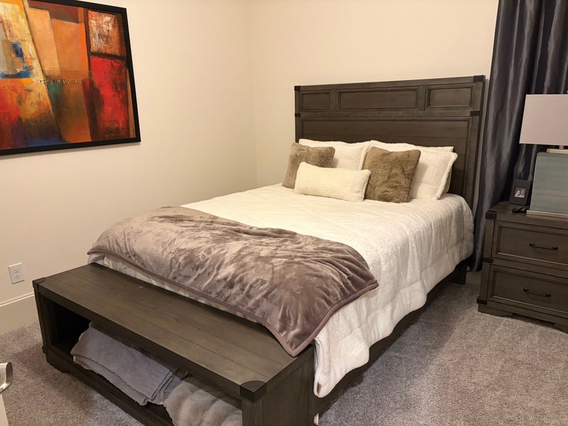 Fully furnished queen room, private bath and private living room in amazing community with 3 pools, fitness center, pickleball court and miles of trails. Must be ok living with one 7 yr old Vizsla. Must pass background & credit check. Looking for a responsible professional that will keep the common areas clean and be respectful of my home.