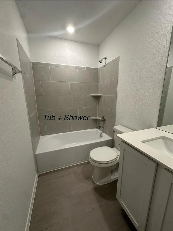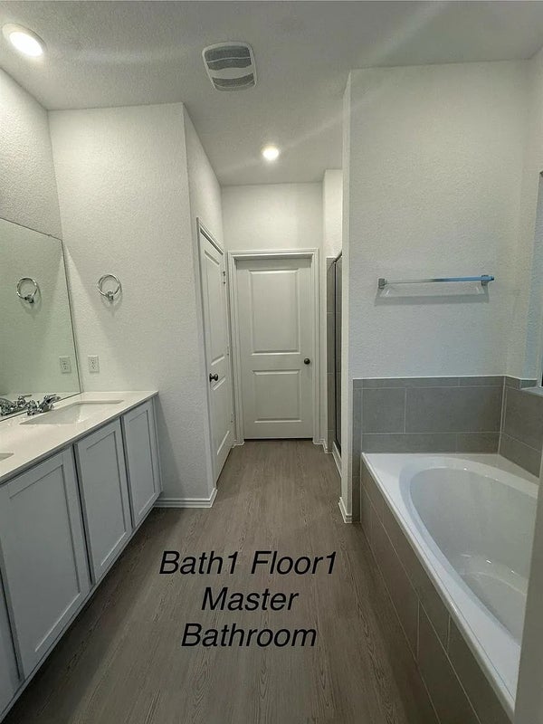 The home offers four generously sized bedrooms, including a spacious primary suite with a walk-in closet, dual vanities, a soaking tub, and a separate walk-in shower.