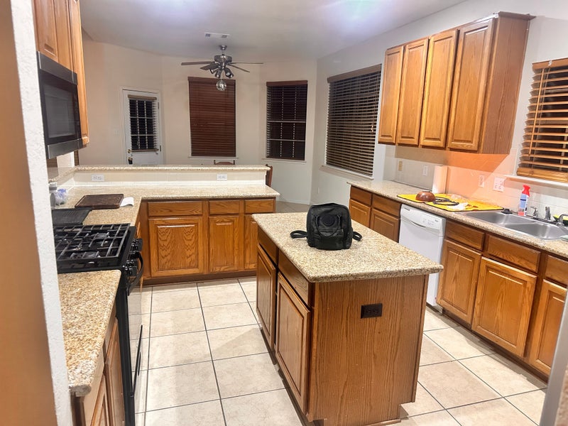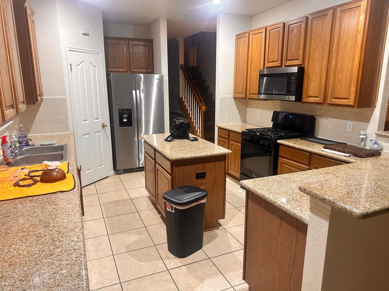Vinyl plank flooring and granite countertops.