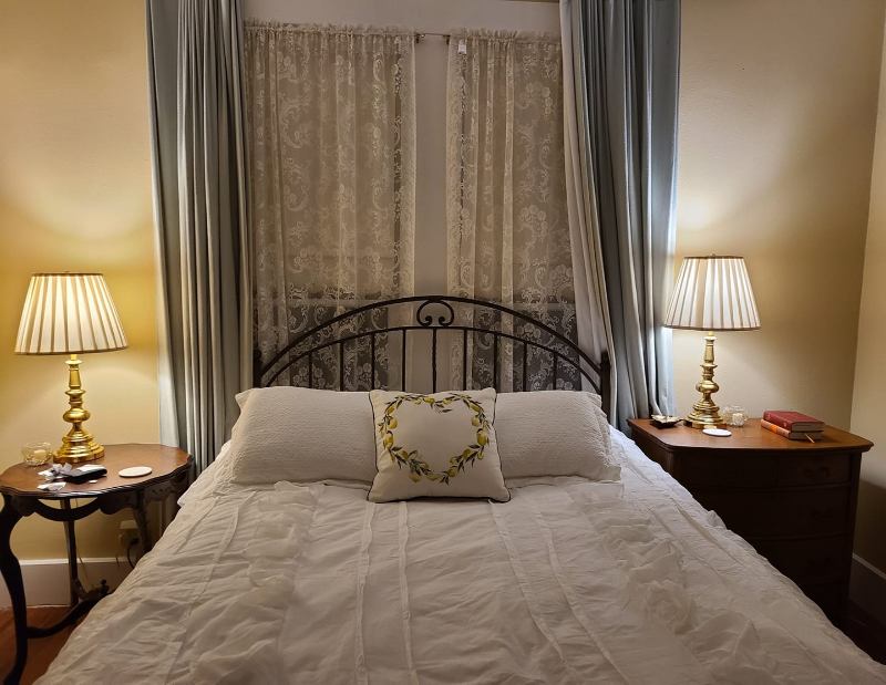 In a large historic home, this beautiful room comes with an adjacent private bath. With this rental, you will also have access to the living areas, kitchen, dining room, laundry room, and pool. This is a one of a kind space that is fully furnished and cleaned biweekly. Walking distance to restaurants, a bar, and shopping.
