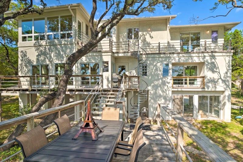 Live in an inspiring, light-filled home directly on the water, about 30 minutes from downtown Austin. The house is a thoughtfully designed lakefront property that’s spacious, quiet, and deeply grounding. Wake up to birdsong, watch the sunrise, and see the light dance across the lake each morning.