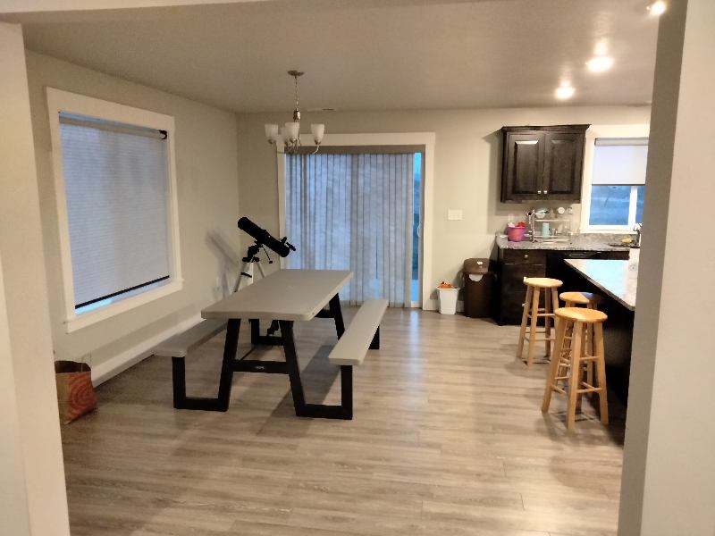 Common space includes kitchen, dining room, living room and laundry room. House is furnished with basic appliances fridge, dishwasher, stoveoven, microwave oven, clothes washer and dryer.