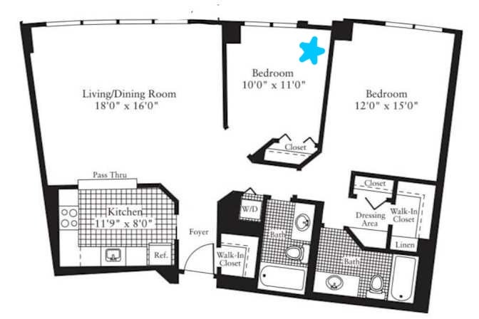 The apartment is 1000 sq ft and comes with your own private bedroom, bathroom, and linen closet. The apartment has an in-unit washer and dryer, dishwasher, and central AC/heat. The bed and other furniture may be available for purchase with the room.