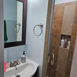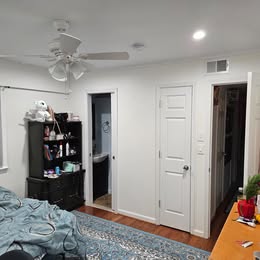 - 1st Floor Master Bedroom – approximately 11’4”x11’3” bedroom with a private bathroom that has a shower. $850/mo (one person) - Utilities included (water, electric, gas, internet; reasonable usage) - FURNISHED; rent includes fully furnished bedroom queen bed, table, dresser, and nightstand (other furniture may be available). - Private bathroom has a vanity and medicine cabinet. - Includes access to kitchen with cooking accessories, separate entertainment room for tenants, laundry room on the property, and designated, off-street parking.