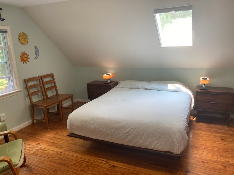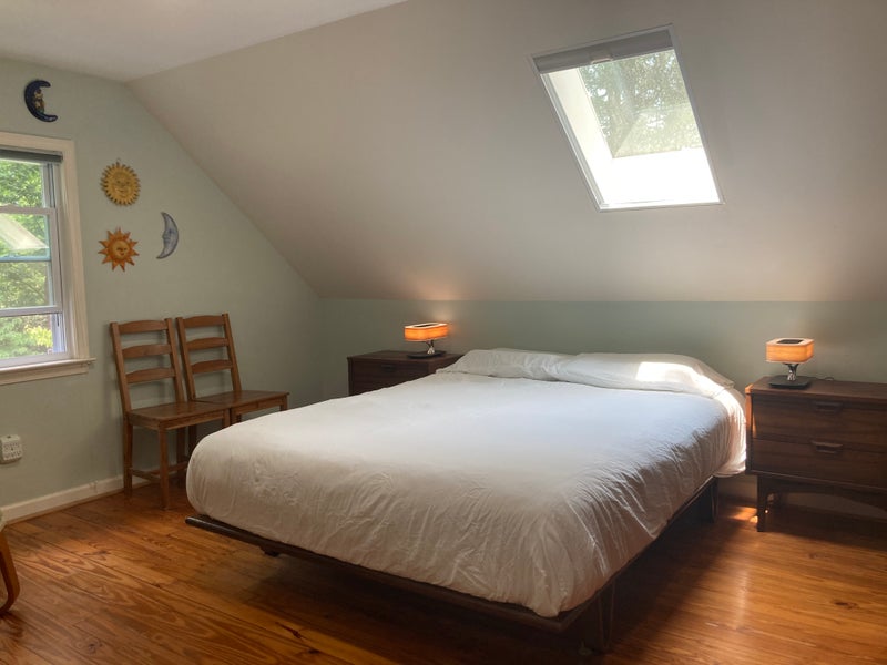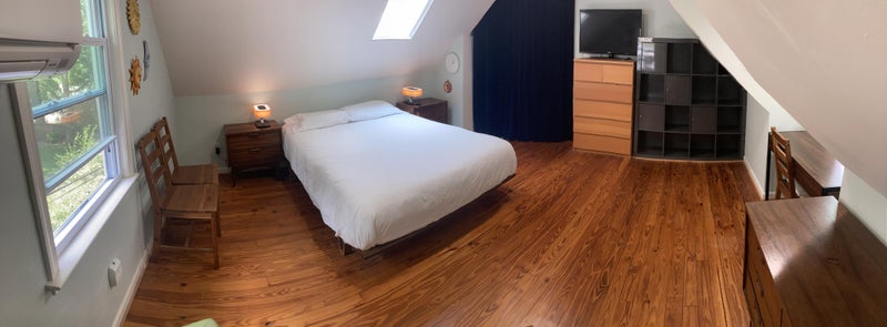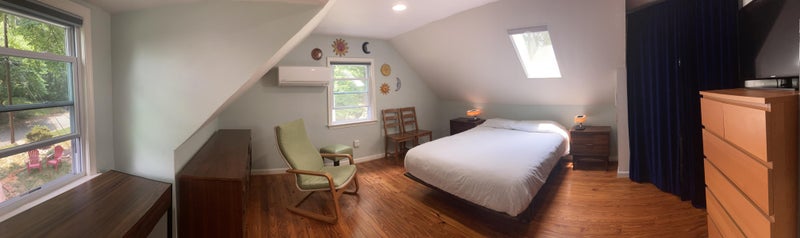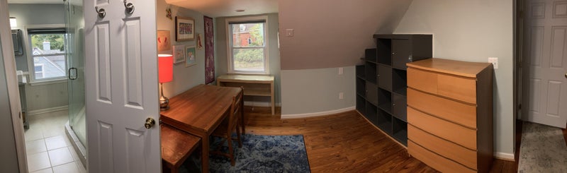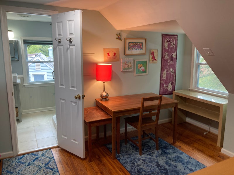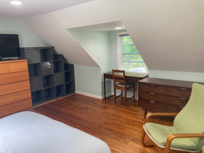 Upper-floor suite, partially furnished, spacious, with bedroom, office, walk-in closet, and full bathroom. This isn’t just a room; it’s an entire floor on the top level of a home located in a peaceful, central Falls Church neighborhood.