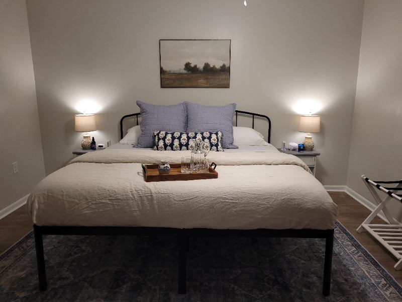 This fully furnished onebedroom basement apartment offers comfort, privacy, and convenience with a private entrance, patio, and offstreet parking. The bedroom features a kingsize bed and generous wardrobe storage.