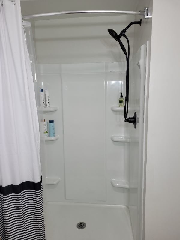 The apartment includes a modern, updated bathroom with a walkin shower and a fullsize washer and dryer. The kitchen is fully equipped with updated appliances, including a refrigerator, microwave, induction cooktop, air fryeroven, and coffee maker. All kitchen utensils and basic spices are provided. A cozy breakfast table with chairs completes the space.