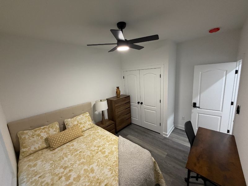 Amenities included: Common area house cleaning periodically Owner provided cleaning products Complete kitchen cookware set Kitchenware that includes a blender, mixer, cutting board set, Chef's knife block set, silverware, drinking glasses, kitchen towels, and some cooking supplies Outside Security Cameras Smartlock doors with keypad and biometric entry Driveway and street parking Lawn care service provided Includes Smart House Technology " Large screen TV in common area BBQ Grill coming soon