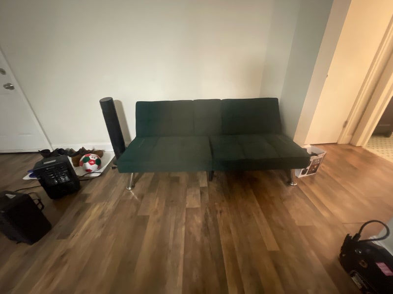 It is a four apartment complex that has one mean bedroom, a full bathroom, a joint kitchen and living room. It also have two closet one in the mean room and another in the command area. Furniture includes a futon and a small TV stand, and an office chair. No bed.