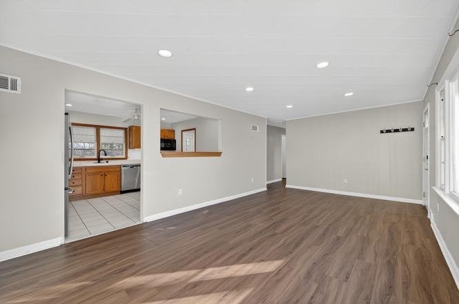 Nothing left to do but move in. Enjoy having a kitchen w new appliances, cabinets and solid surface counter tops, a fresh bath wcustom tiling, refinished hardwood floors, Interior and exterior freshly painted, laundry space ,large yard with metal storage shed.