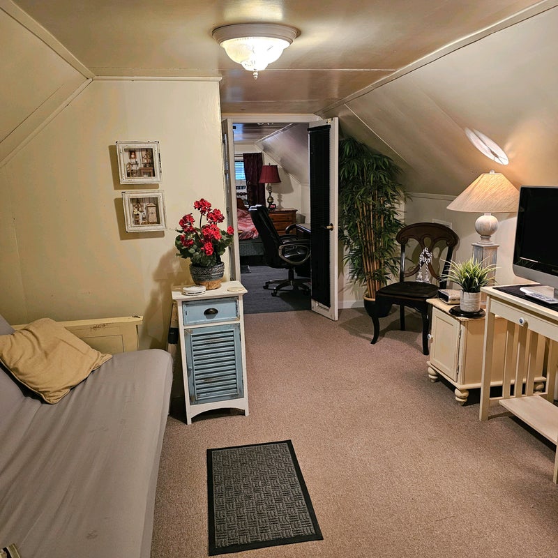 Our home is in an upper middle class professional neighborhood in Norfolk, minutes from downtown Ghent. It's a classy suite, and we are looking for males 21-40's of the same. We are very cool people, laid back, professionals males. We have maid service, but we are still very clean. This 3100 sq foot house has it all. A guest suite and a guest house. High speed wireless internet ,43inch plasma Wall TV with Tivo service, entertainment media room, laundry room and ECT. The room available is a loft master bedroom suite. Queen size bed with feather top mattress and new silk sheets, leather chairs, and mahogany desk, its own continental kitchen, dressers built in the walls and closet. The master bedroom is separated with French doors that open to its own sitting room. Plenty of attic storage space, and window light. It has a sound system and two TV's, , private bath, tub, and shower, and Wi-fi. This is a total presidential suite! The rent includes all utilities. Maturity is a must. Military very much welcomed. Feel free to call call/Text. Good Luck! DO NOT WAIT! Mr. Al P. S. The first twelve pictures are that of your private suite, and the last three pictures are that of the main house. All you need is your lap top! MALE ONLY! You pay slightly extra for your fully furnished PRIVATE suite. keep in mind you have your own, private kitchen, living room and bath. Two TV's. The neighborhood is SAFE and upper middle class. All utilities included. do NOT contact me with unsolicited services or offers