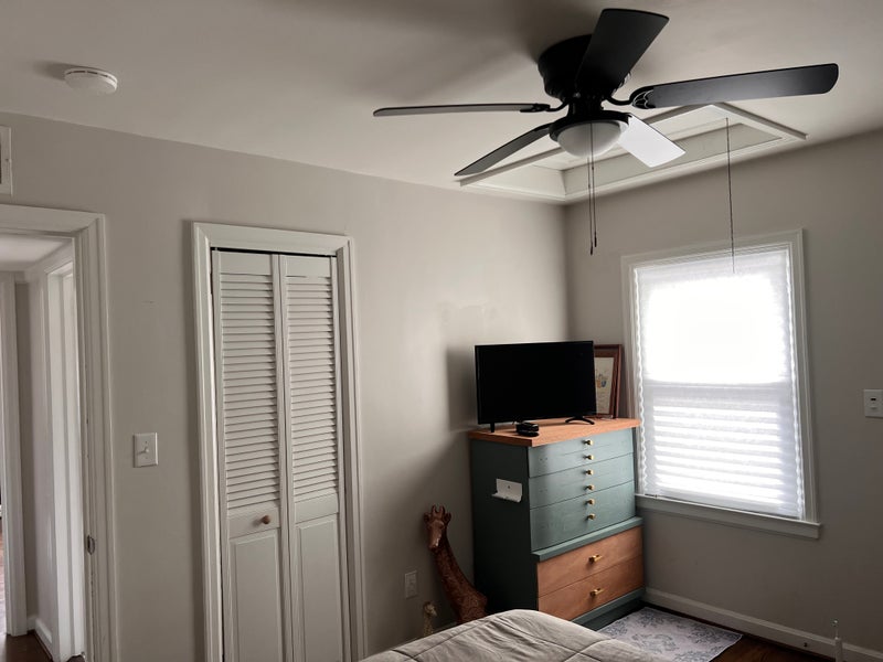1 room with bed and dresser. 1 window, ceiling fan. Hardwood floors, small closet with shelves. 1 shared bathroom with tub/shower . 1 half bath that could be private. Shared living room, dining room and kitchen. Prefer relatively quiet lifestyle. Internet available. Large yard for gardening. Extra room available for office