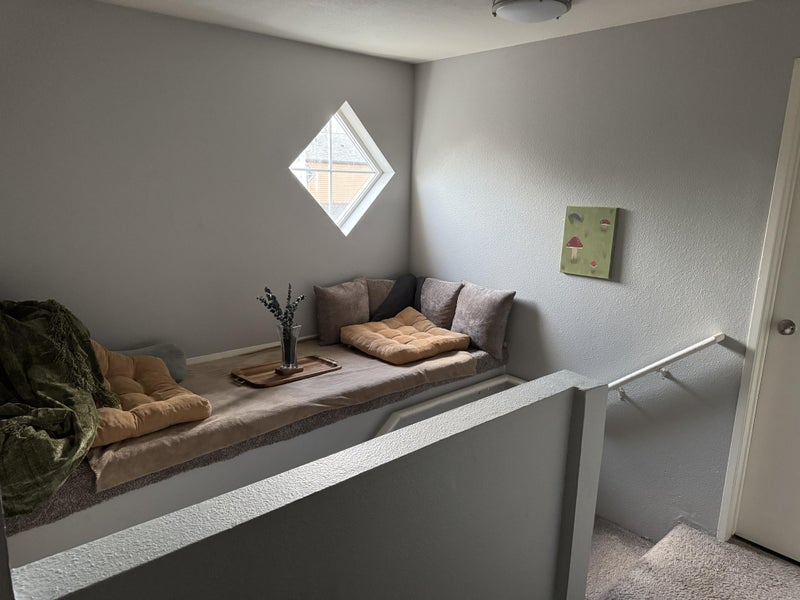 **The room itself is not pictured. It is similar in size to the game room (the one with the white couch). We are currently open to people touring the apartment!