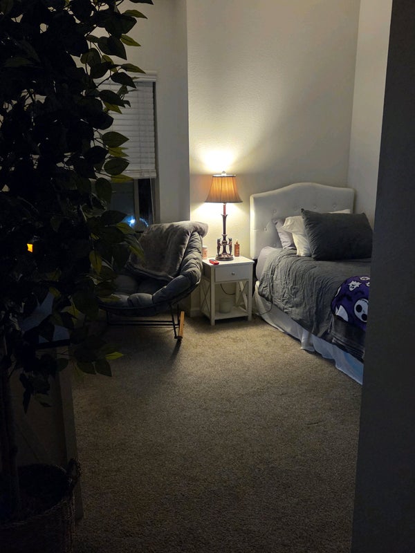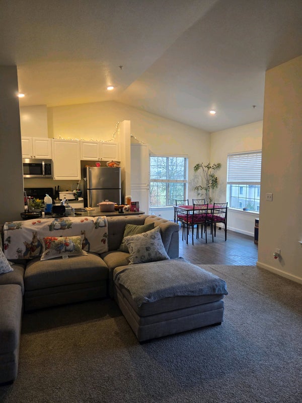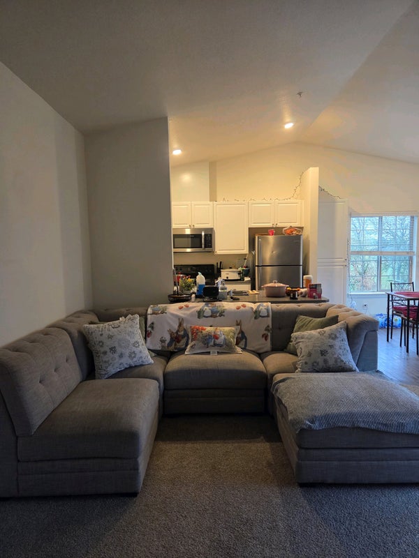 We live on the 3rd floor of a cute apartment with a pretty view of the nextdoor property’s field and a little balcony. You would be taking over our previous roommate’s room (duh) as she is moving out. The master bedroom and an identical room to the one you would be occupying are filled by us 2, Des and Ocean! You would be sharing the bathroom in the hall with me, Ocean. I like to keep this space clean so it is important to me that you would too. Our apartment is furnished but the bedroom will not be. We live in a gated apartment complex with some little trails, picnic tables, and BBQs. There is also a clubhouse with a gym, pool table, hot tub, and an outdoor pool. You will have to complete an application/background check with the property as well as provide proof of employment/income or credit (or a willing cosigner). The property name is Stonebridge Crossing. Feel free to look up the website to gauge a bit more. Rent would be $820 (including utilities) + around $35 a month for electricity = $855. We are hoping to find someone by April 1st. You would be signing our current lease lasting until 8/31/26. (Also, kitchen looks a bit cluttered as we are re-organizing as roommate moves her stuff). It is REALLY important to us that our roommate is someone who wants to be friends or at the very least, have friendly interactions. We don’t have to be in each other’s presence or business 24/7, but we want the dynamic to have “sleepover vibes” in Des’ words. We like to hangout here and there. EX: go on errand or coffee runs together, make dinner, or watch shows together. If you are someone who solely keeps to yourself and has no interest in being friends with your roommates, we won’t be a good fit for you. Des and I also like to have a “sharing is caring” mindset. We are not stingy when it comes to appliances/food/household products as long as there is open communication and consideration there. We want to foster a living environment that is safe, comfortable, and where we can all rely on each other. Please don't hesitate if you'd like to see if we'd be a good fit!