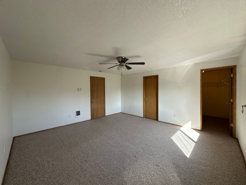 1. Master Bedroom — $950/mo: The largest of the three at about 228 sqft, with a private full bathroom and a roomy walk-in closet (~57 sqft). Upstairs, freshly painted, carpeted. Great for someone who wants maximum privacy and their own bathroom.