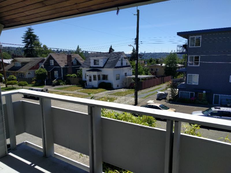The available unit is a large one bedroom on the top floor. It has a south facing balcony providing a territorial view of Ballard and Mt Rainier! The beautiful open kitchen features granite countertops tile flooring and wood cabinetry with new appliances including a dishwasher. The bathroom has a tile floor and shower surround with a granite sink vanity. There is hardwood flooring throughout the rest of the space. Other features include an inunit washerdryer large hallway closet closed private stair entrance and a basement storage locker.