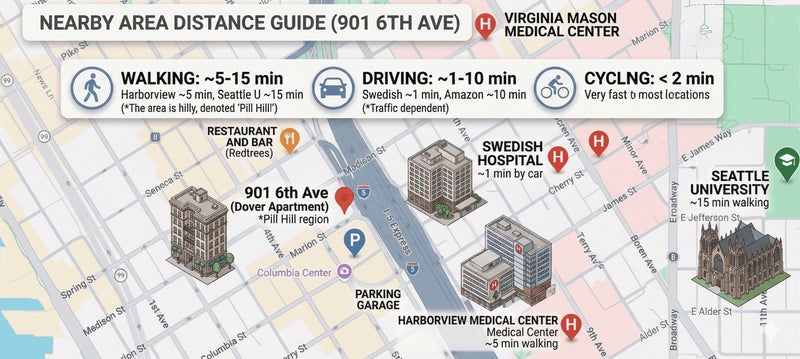 Beyond work and study, the city's most iconic landmarks are at your doorstep. The Seattle Public Library’s Central Branch is four minutes away, while the historic Pioneer Square and the world-famous Pike Place Market are within a short walking distance. For regional travel, the University Street Light Rail Station is a seven-minute walk, providing a direct link to SeaTac International Airport, while immediate access to the I-5 freeway ensures easy weekend getaways for those with a vehicle.🏥 Medical Center Proximity (The "Pill Hill" Advantage)Harborview Medical Center: A mere 5-minute walk. Ideal for medical residents and healthcare professionals.Swedish First Hill & Virginia Mason: Both are within a 1-12 minute radius, offering the shortest commute possible for hospital staff.🎓 Higher EducationSeattle University (SU): Only a 14-15 minute walk or a very short drive.University of Washington (UW): Approximately 13-15 minutes via I-5.💼 Professional & Urban AccessCentral Business District: You are steps away from the Columbia Center and the city's financial heart.Amazon HQ (South Lake Union): A swift 8-12 minute drive depending on traffic.Transit Hub: King Street Station is just 13 minutes away for commuter rail access.🚶 Lifestyle & ConnectivityWalk Score: 99 (Walker’s Paradise): You don't need a car. Groceries, world-class dining, and the Seattle Art Museum are all within your "walking backyard."Transit Score: 100 (Rider’s Paradise): World-class public transportation options at your doorstep.I-5 Access: Immediate on-ramp access for those commuting north or south of the city.