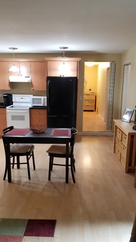 Rambler in culdesac location with attached, private MIL apartment. Separate entrance leads to light and bright open floorplan living room with gas fireplace, ceiling fan and alcoves with glass display shelves and cabinets. Large slider to private, fully fenced backyard with paver patio and landscaped beds. One bedroom with oversized closet, large window, ceiling fan and laundry alcove with stackable washerdryer. Remodeled bath with fullytiled shower and linen closet. Kitchen features granite counters, refrigerator, ample cabinets, microwave, stove, pantry and double windows over sink creating a bright and inviting space. Easy access to I, ParknRide, shopping, library and bus line. Fixed Monthly Utility Fee of $ covers gas heat, electric, watersewer and trash. Culdesac street parking for this unit. Friendly, smaller pet on a case by case basis.