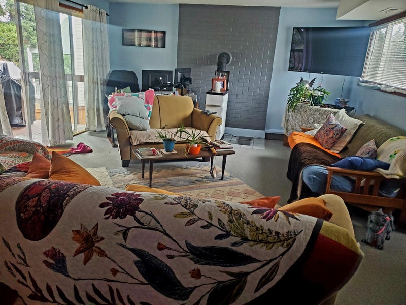 Step outside to a beautifully landscaped backyard surrounded by mature trees and lush greenery. Whether you’re enjoying morning coffee on the lawn or gathering around the fire pit, the outdoor space feels like a private retreat. Laundry machines are available, and parking is provided in the gravel driveway or directly in front of the home.