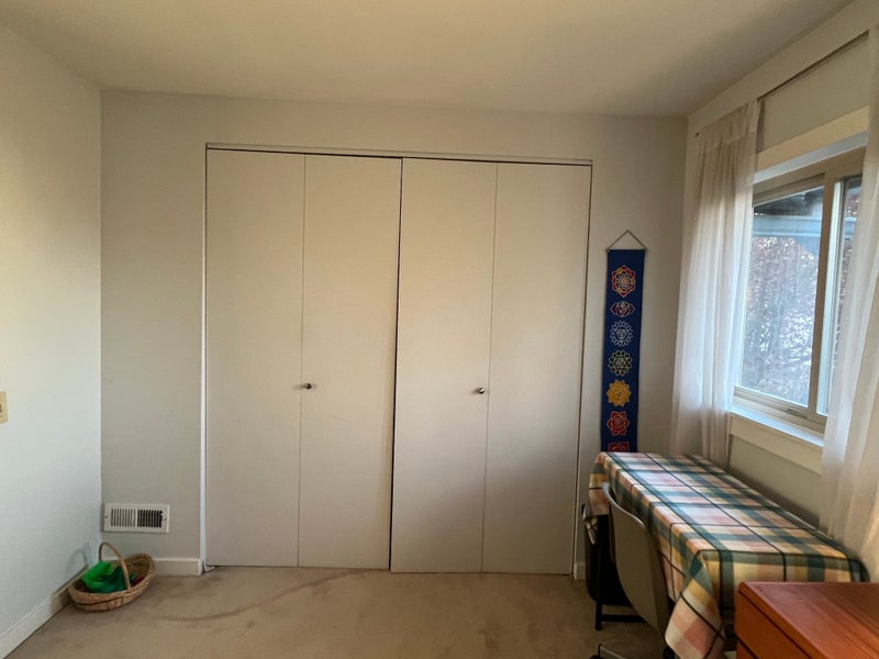 This bedroom is furnished and includes a bed, dresser, desk (dedicated workspace), and a large closet for storage. It offers a comfortable, private space with good natural light and is located in a quiet part of the home. We are block from bus stops to everywhere, close to the light rail, and have ample street parking. Utilities included. Seeking a roommate who is vegetarian or kosher friendly.