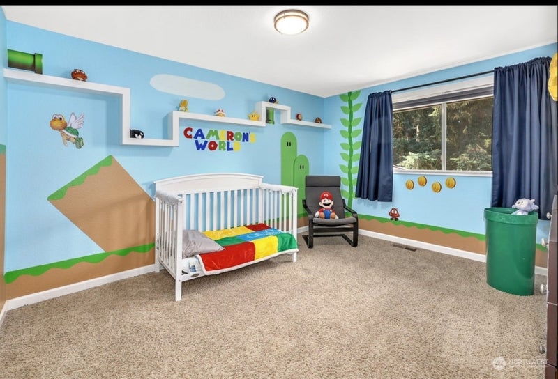 Private room in 2200 sq ft house with built-in dresser. Bathroom Bonus: Shared shower, but you have access to a separate half-bath at all times. Bills included: utilities & Internet are included! Pet-Ready: Large fenced backyard and a safe, walkable neighborhood. Washer & Dryer in house. The Location: Rapid access to I-405 and HWY-167 (ideal for Boeing, Valley Medical, or Eastside tech hubs). Quiet, safe street with plenty of room to roam. Yes the room is Mario themed and if you feel so inclined you may redecorate if you sign a 12 month lease.