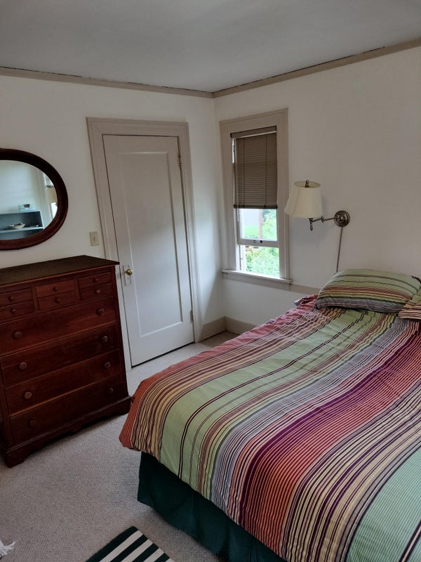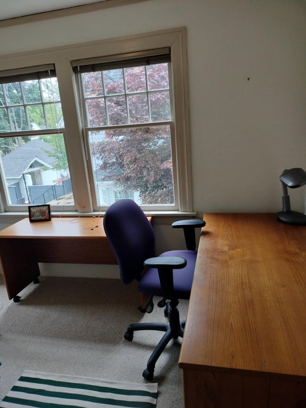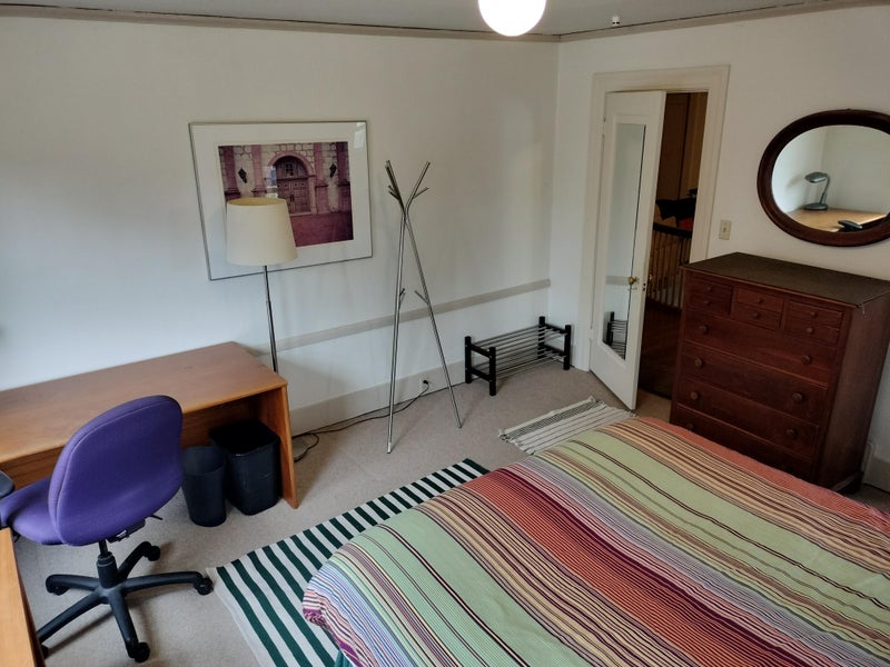 Quiet, furnished room for rent in single-family home. Large closet, shared bathroom with other tenant. Upper level, multiple windows. Includes desk with chair, dresser, queen bed. Linens included.