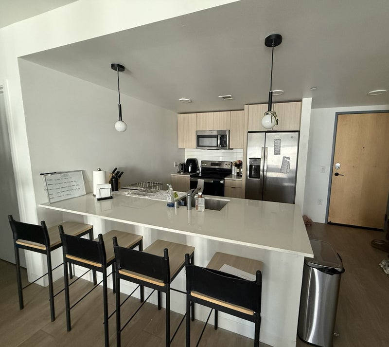 The apartment comes with a completely furnished large living space, in-unit washer and dryer, and you will have a personal bathroom. The bedroom comes with a XL full sized bed with a mattress, a desk and chair, closet, and plenty of storage space. The apartment also has a gym, rooftop, study rooms, and is close to University Village, bus stops, and UW campus. There are also other rooms that will be available if you are looking to live with a friend!