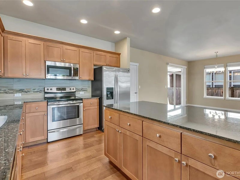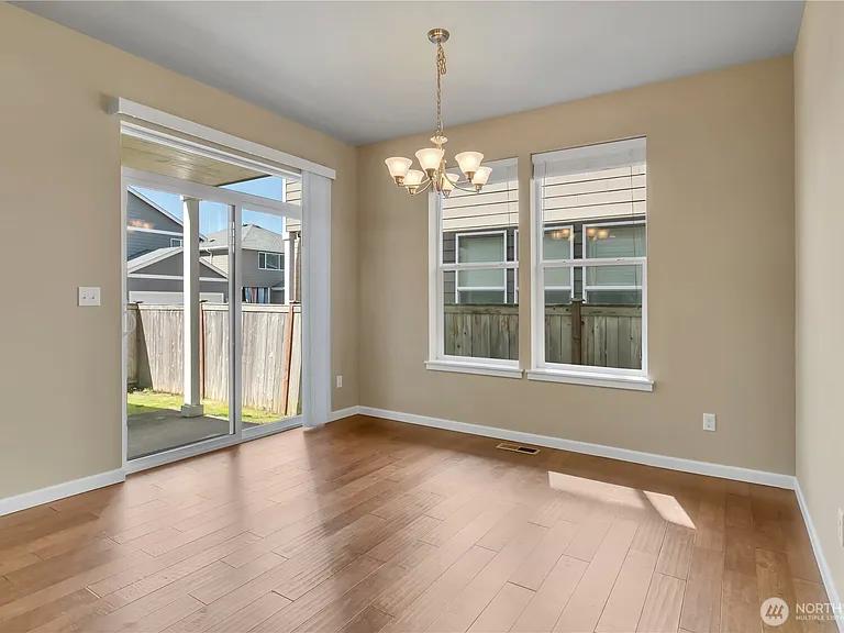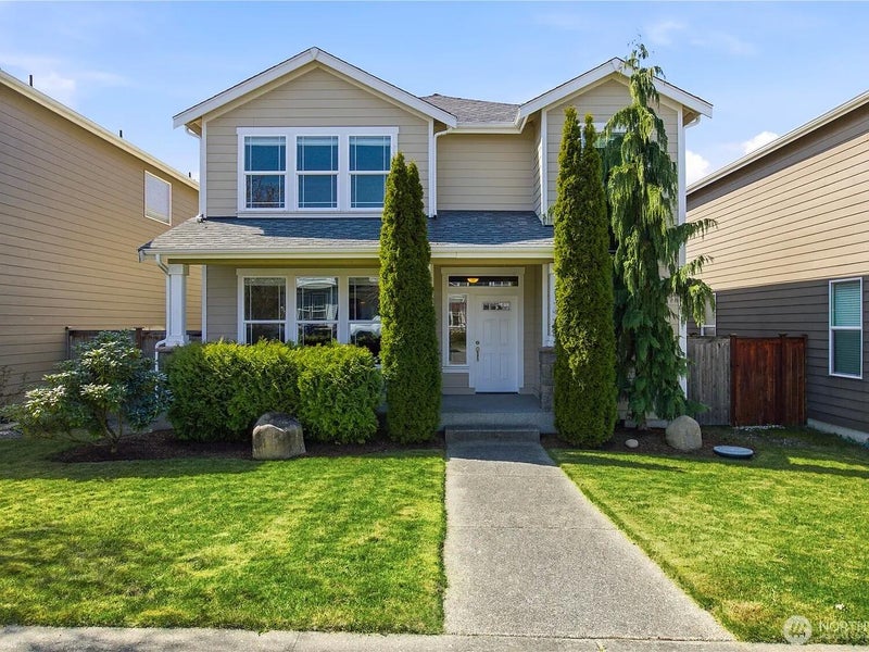 Welcome to this beautifully appointed home in the sought-after Brookfield neighborhood of Silver Creek, offering 2,164 sq ft of stylish and functional living space just minutes from local amenities. The open-concept main floor features 9’ ceilings, rich hand-scraped hardwood flooring, and a spacious living area centered around a cozy gas fireplace with slate surround. The kitchen is designed to impress with granite countertops, an undermount sink, custom cabinetry, and crown molding—perfect for both everyday living and entertaining. Upstairs, the expansive primary suite is a true retreat, complete with coffered ceilings and a spa-like 5-piece ensuite.