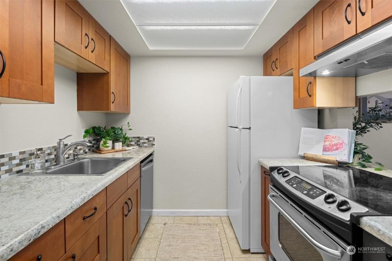 The fully remodeled kitchen includes softclose cabinets (), complemented by new hardware, light fixtures, and door knobs (). Secure private lobby entry adds peace of mind. Owner covers water, sewer, and garbage, keeping monthly costs simple and predictable.
