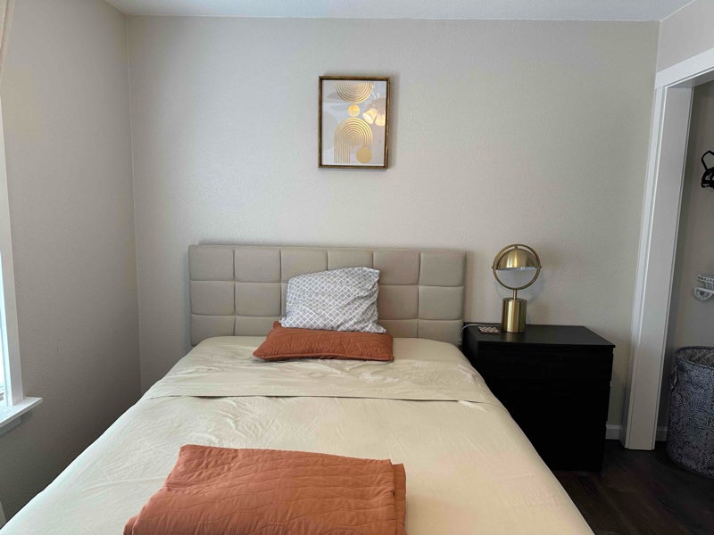 Claim this completely furnished bedroom with a private bath in our home. You will have communal access to the kitchen and other living areas, plus a dedicated refrigerator for your use, and a dedicated parking spot in the driveway.