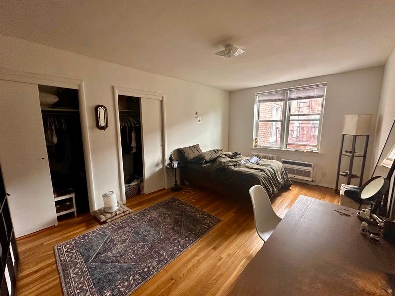 Your room is super spacious (~200 sq. ft.) with a full wall of windows and 3 large closets. (Bedframe, desk & chair, storage, etc. included if you’d like.)